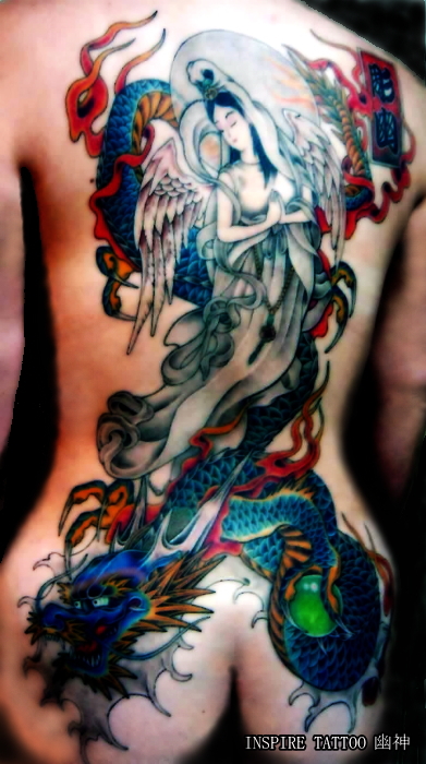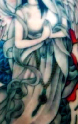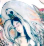 白衣観音はほとんど薄ぼかしのみの鴉彫りで仕上げ、それと対比するように