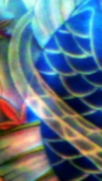 伝統継承 男らしく背中に抜きで一匹鯉 全体的に黒でまとめ、鯉には黄色でアクセントを与え、 紅葉は赤と緑のみでまとめました。 波を大胆にあしらい、鯉の上には水の中を くぐるように古典的な手法を使い、伝統的な仕上がりに なるようにしてあります。 彫幽時代の中期の作品です! |